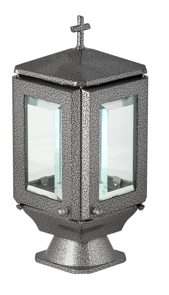 Καντήλι τάφου επιτραπέζιο, τετράπλευρο, λείο με κρύσταλλο, διαστάσεων 29×13, κατάλληλο για εξωτερικούς χώρους. Είναι κατασκευασμένο από υψηλής ποιότητας αλουμίνιο, γεγονός που το καθιστά ιδιαίτερα ανθεκτικό στις εξωτερικές καιρικές συνθήκες και του προσδίδει μεγάλη διάρκεια ζωής.