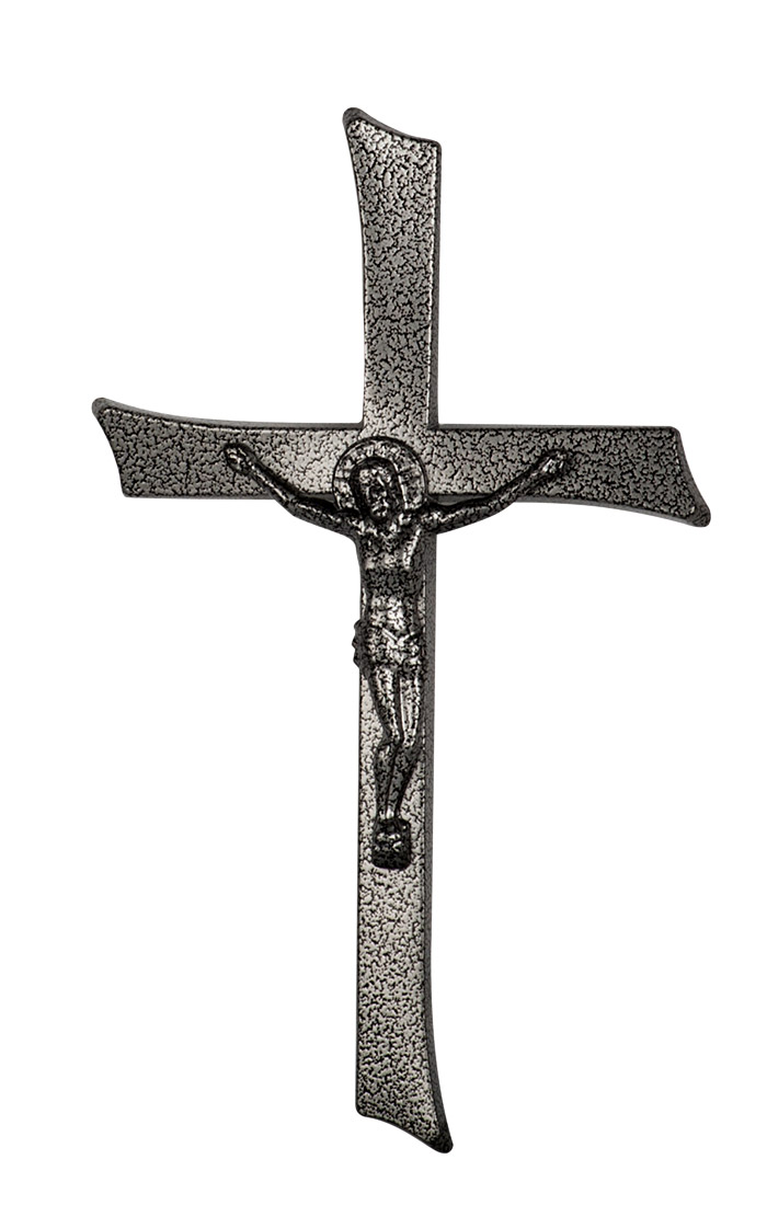 Σταυρός τάφου λείος με σώμα Εσταυρωμένου, 26 εκατοστών, κατάλληλος για εξωτερικούς χώρους. Είναι κατασκευασμένος από υψηλής ποιότητας αλουμίνιο, γεγονός που τον καθιστά ιδιαίτερα ανθεκτικό στις εξωτερικές καιρικές συνθήκες και του προσδίδει μεγάλη διάρκεια ζωής.